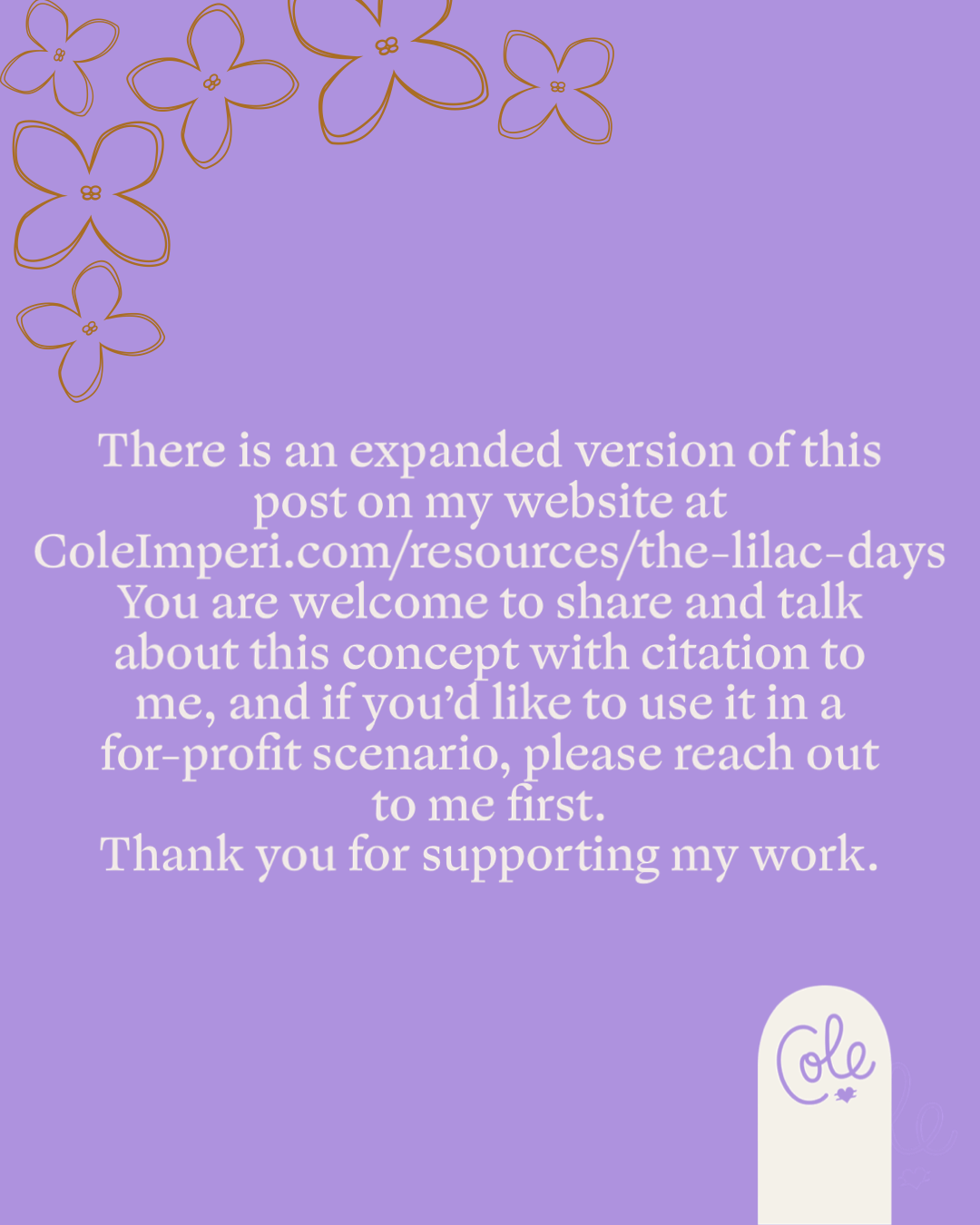 Once you learn about The Lilac Days™, it’s common to easily see it in your life. You might find yourself saying “I’m in the lilac days right now” or even be able to look towards the past and label specific periods of time.